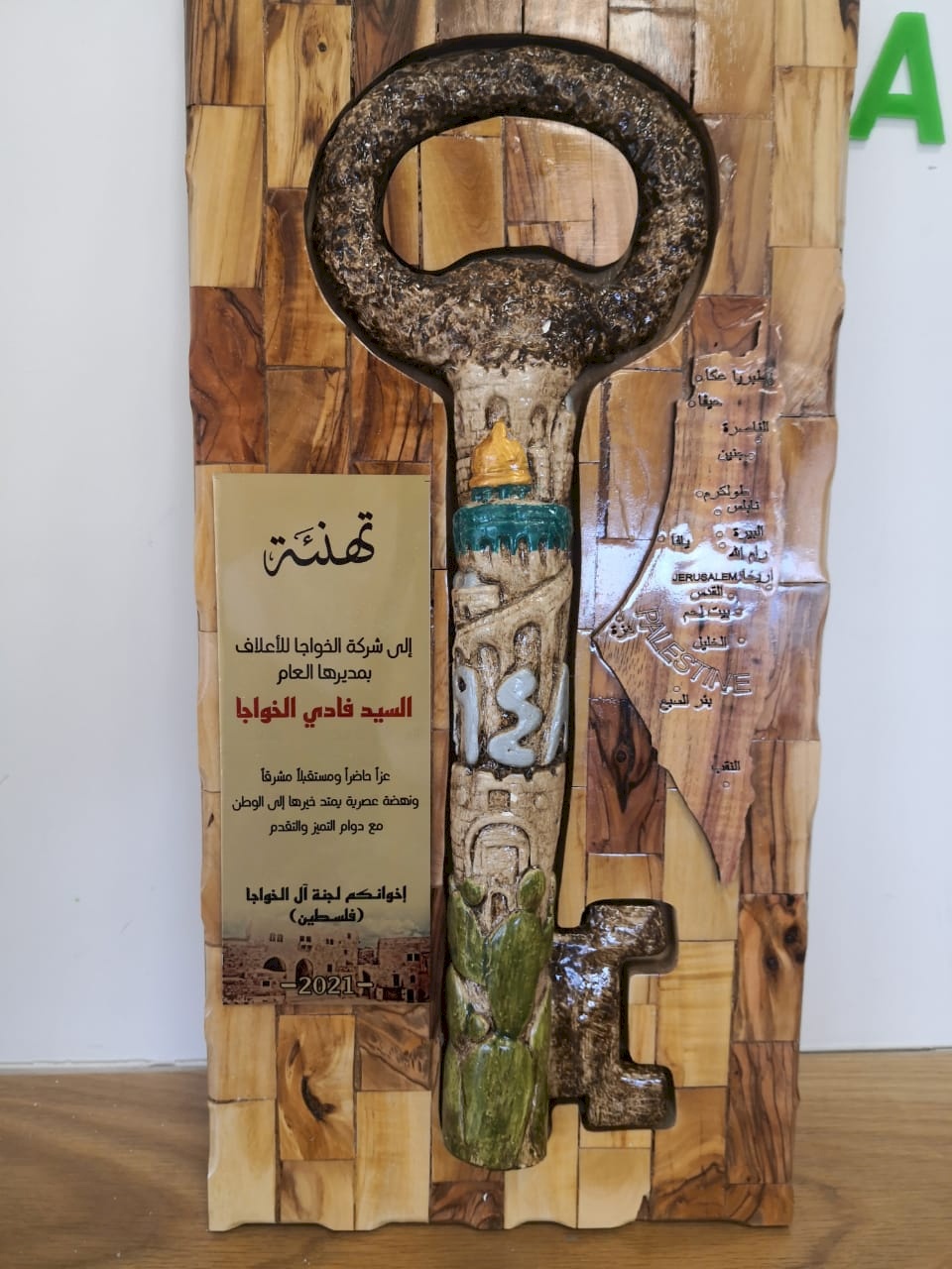 وتم استلام درع الاهداء المقدم برمز مفتاح العودة بعنوان " عزا حاضرا ومستقبلا مشرقا ونهضة عصرية يمتد خيرها الى الوطن"