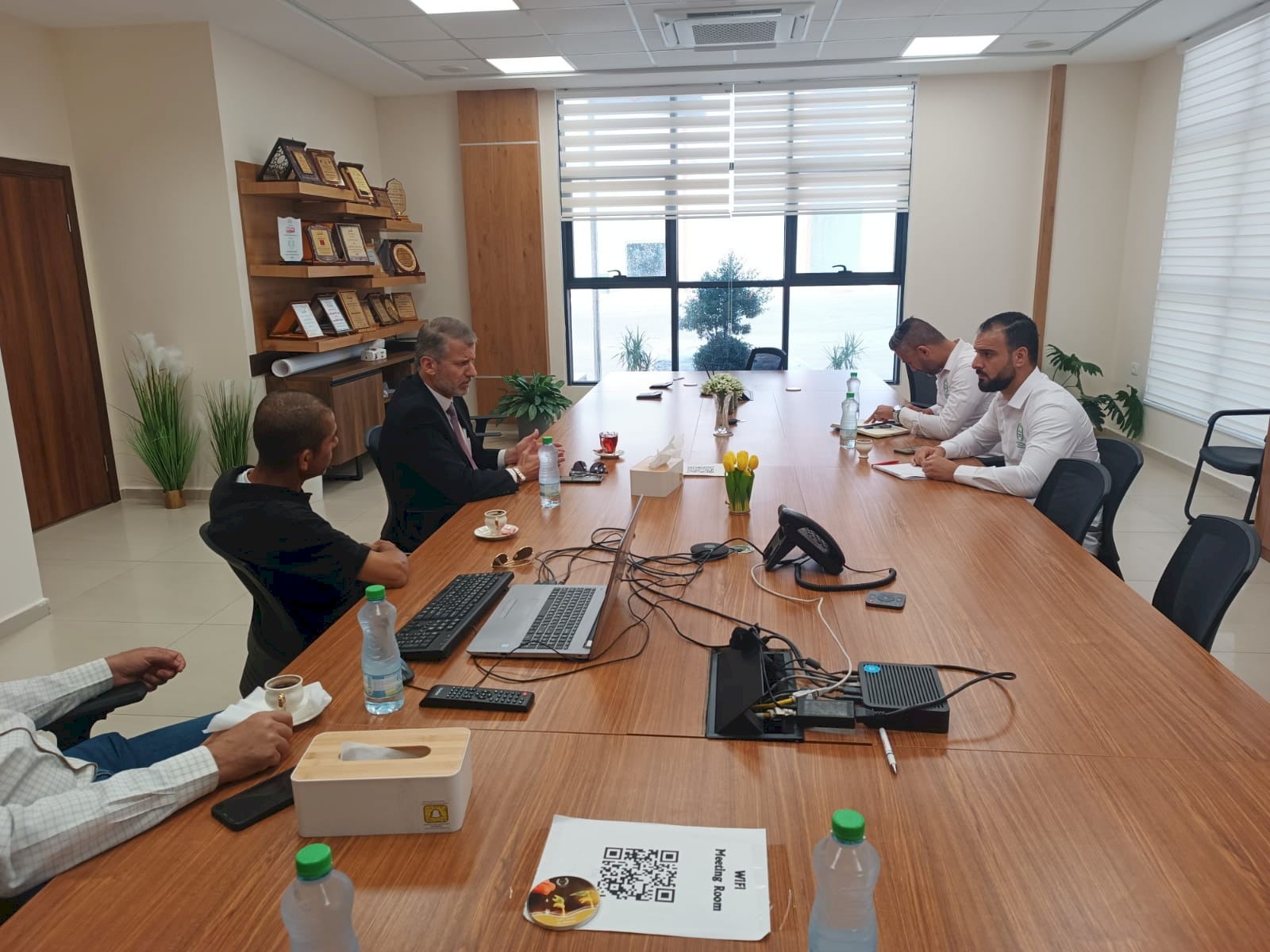 والمهندس زياد أسعد والسيد زياد أبو عيشه ، حيث تم بحث سبل التعاون المشترك والتعرف على أقسام الشركة وطبيعة العمل .